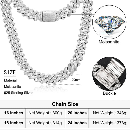 【#L42#N8 20Mm】 92Silver Cuban Link Chain Moissanite Hip Hop Jewelry Miami Necklace Fashion Gift